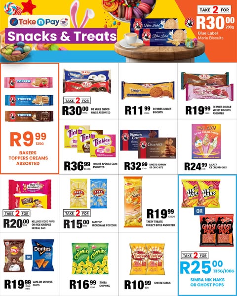 搜索关键词 Take N Pay Easter, Easter Eggstravaganza Deals, Easter Savings, Grocery Store Promotions, April 2025 Promotions, Limited-Time Grocery Deals, South Africa Retail优势 Deals and savings,Easter-themed promotions,Limited-time offer