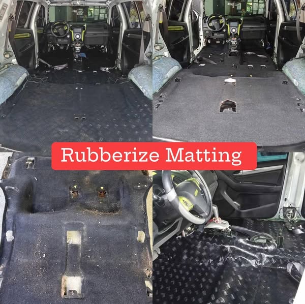 Service: Full Interior Detailing with Seat, Carpet and Ceiling Removal, Anti Corrosion paint, Rubberize matting, Body repair and black trim restoration 🔥