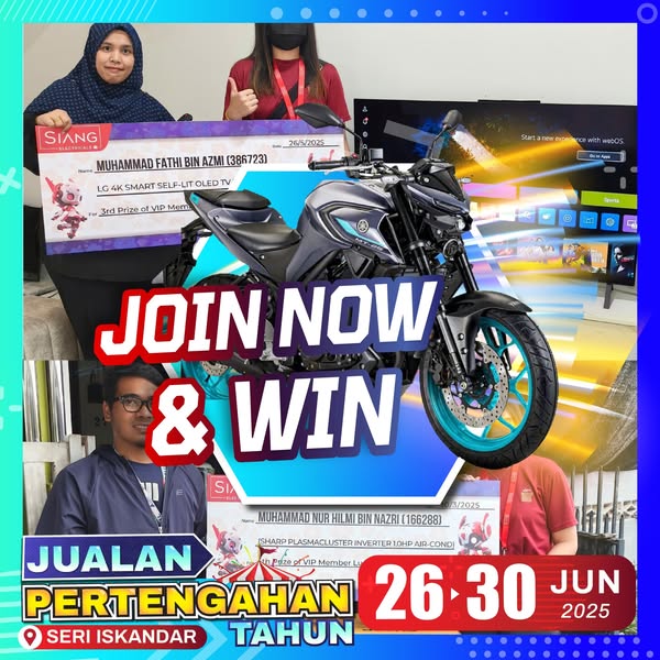 #menangyamaha #yamahamotor #CashRebate #Tradein #nurpetra #jimatmurah #baranganelektrikmurah #barangelektrik #tvmurah #mesinbasuhmurah #petisejukmurah #aircondmurah #siangelectrical #siangvip #membersiang #atomepay #SPayLater