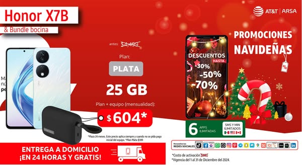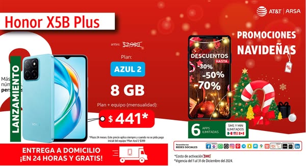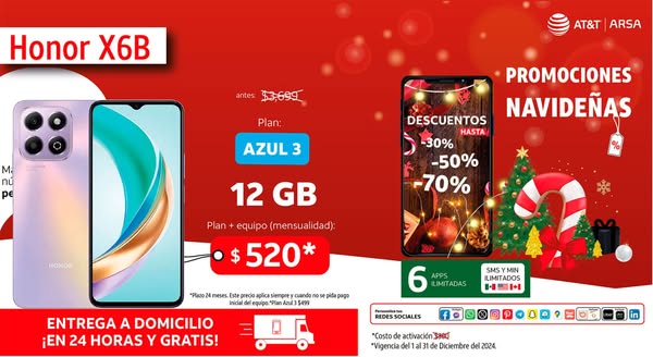 ¡La Navidad llegó, cámbiate a AT&T y obtén el 20% de descuento en tu mensualidad y muchas más promociones en equipos! 🥳📲🩵🌎