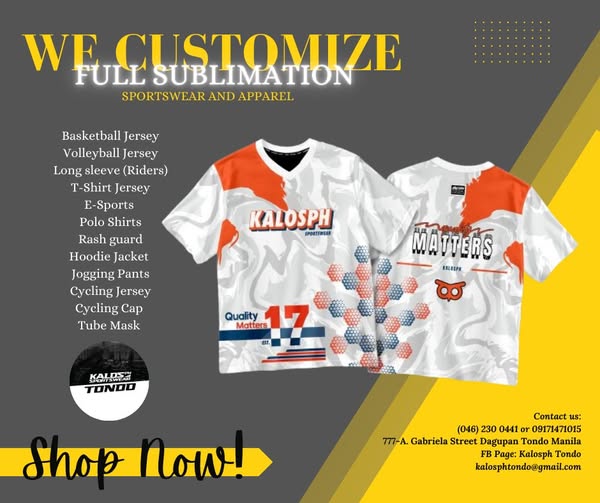 搜索关键词 custom sportswear, sublimation printing, team jerseys, custom apparel philippines, affordable sportswear, quality sublimation, personalized uniforms, cycling jersey, basketball jersey, t-shirt printing优势 Affordable Pricing,High Quality Printing,Customizable Designs,Wide Range of Products,Free Layout for Minimum Orders
