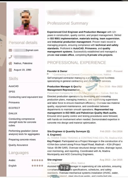 搜索关键词 professional cv service, resume writing service, ATS optimized CV, career advancement, job opportunities, Palestine jobs, West Bank jobs, customized resume, impactful cv, CV for professionals优势 Professional CV crafting,Customized design,ATS optimization,Experienced team