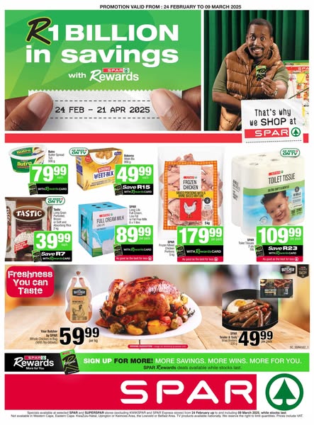 There are just about a BILLION reasons to shop at SPAR!🛒🌟 Reward your pocket with these incredible savings. Buy any of our participating products and swipe your SPAR rewards card for a chance to WIN your share of R1 Billion in savings.