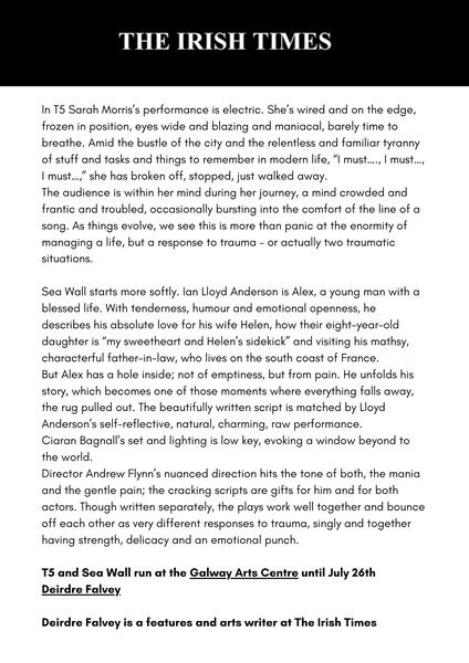 Great response to the very special performances happening in Nuns Island: Seawall and T5. Shows 8pm daily until Saturday 26th: