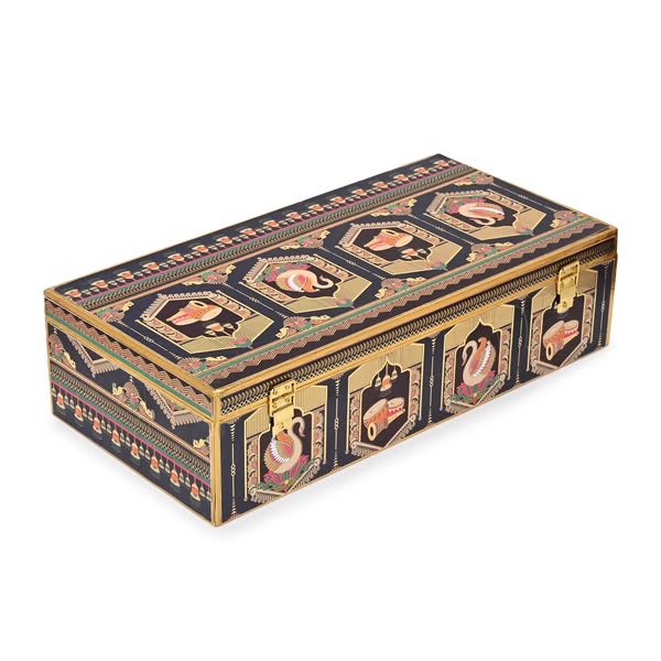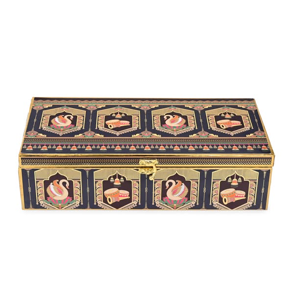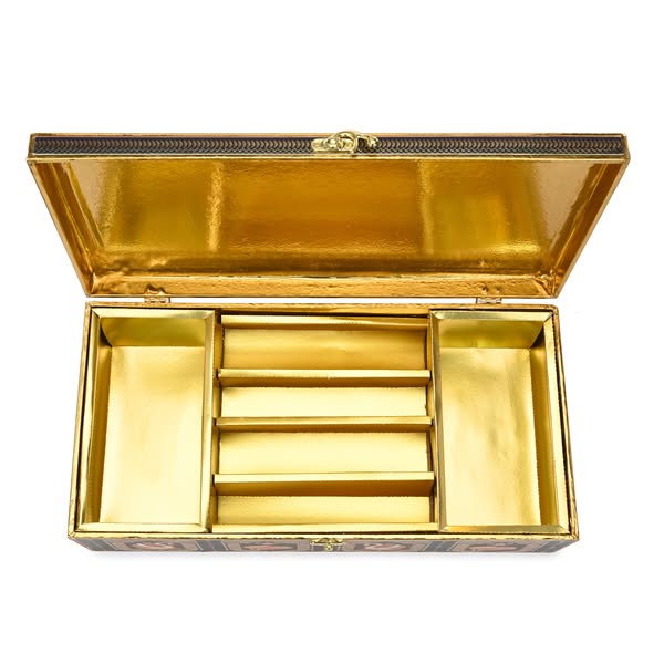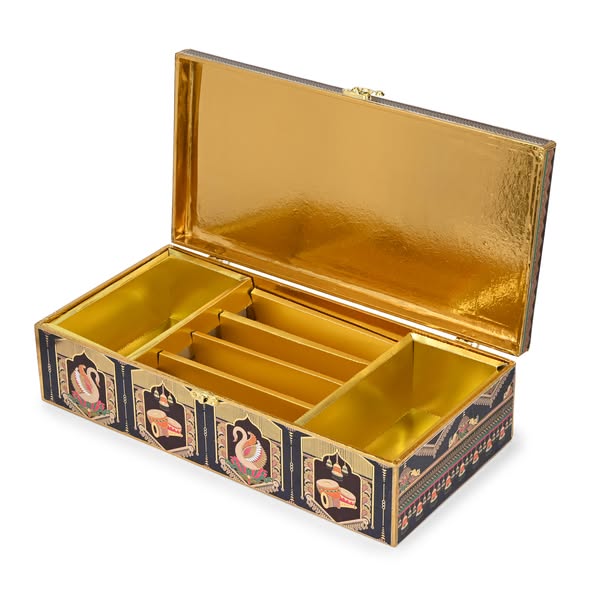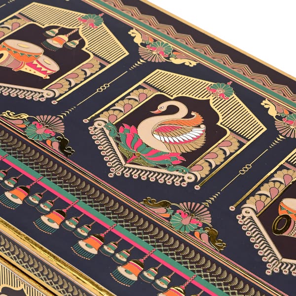 Crafted from premium MDF plywood, this box features a golden foil design with 16 Meethe Pattal and 8 Kachori Pattal compartments. Luxurious and secure, it’s ideal for gifting or sweet shop presentation.