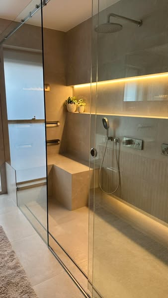 搜索关键词 bathroom renovation, bathroom design, luxury bathrooms, shower spa, modern bathroom design, fluted vanity, lusso tiles, led lighting, home improvement, bathroom remodeling优势 High-quality execution,Custom details,Use of premium materials (Lusso tiles),Modern design features