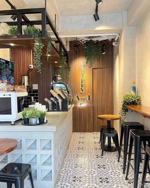 Proudly crafted by A&A Stucco Cement, this café project blends raw industrial style with the warmth of natural wood finishes — featuring polished cement walls, textured surfaces, and a design built to impress.