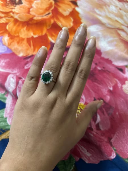 ⭐⭐⭐⭐⭐ - "Puja Guha about Green Emerald Oval Halo Solitaire Silver Ring"