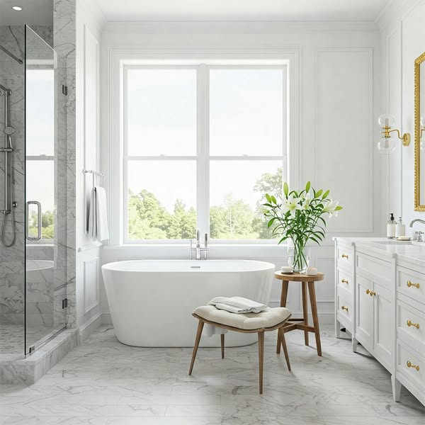 搜索关键词 luxury bathrooms, bathroom interior design, spa bathroom design, modern bathroom vanities, marble bathroom, bathroom renovation, refined living, design sanctuary, tranquil escape, natural bathroom textures优势 Spa-like atmosphere,Use of high-end materials like marble,Focus on natural textures,Modern and elegant design