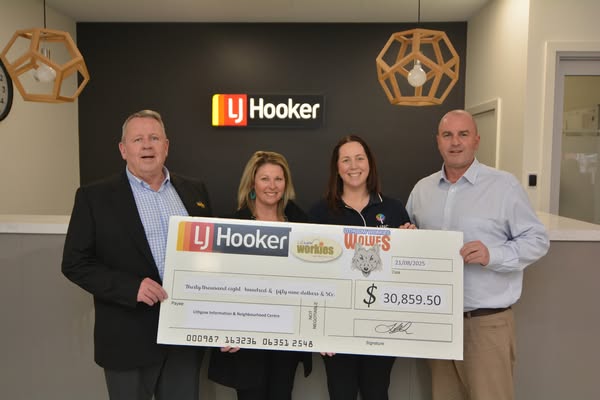LJ Hooker Lithgow, Lithgow Workies Wolves RLFC & Lithgow Workies Club & Motel were this week proud to present a cheque for $30,859 to Lithgow Community Private Day Surgery and Specialist Centre and LINC Lithgow Information & Neighbourhood Centre (LINC) as part of the proceeds of our recent Charity Auction which raised $61,719.