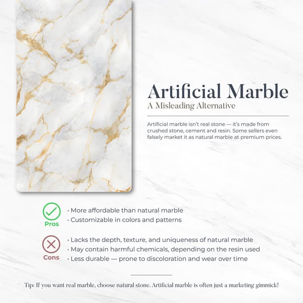 🔻Artificial Marble: Lower quality, may contain chemicals