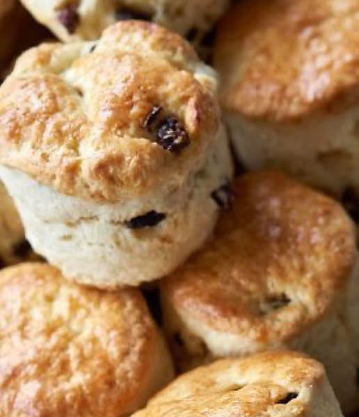 Traditional plain British scone plus cinnamon and raisin. Both served with Devonshire clotted cream and homemade lemon curd and strawberry jam.