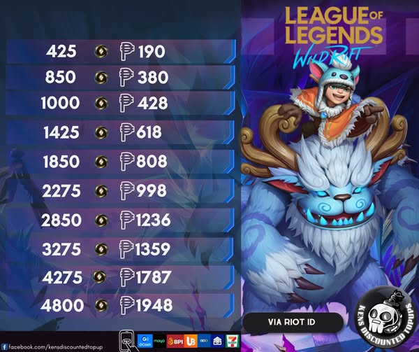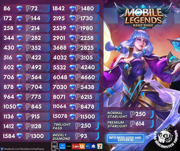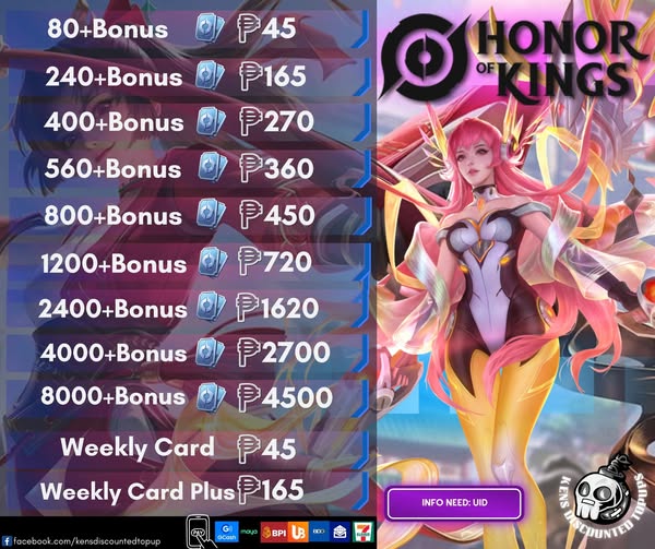 Welcome to Ken's Discounted Top Ups! We have updated our price list. We are now open for orders. We provide you game credits that are safe and legal at a lesser cost.