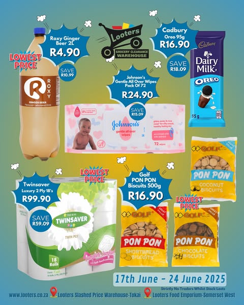 搜索关键词 looters warehouse, winter sale, capetown bargains, grocery deals, discount prices, limited stock, affordable groceries, household essentials, stock up, south africa优势 Massive Savings,Wide Variety of Products,Limited Time Offer
