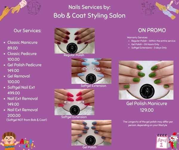 搜索关键词 beauty salon, hair treatment, nail extensions, April promotions, salon Angeles City, eyelash extensions, KeraCollagen Blow Out, Brazillian Botox, Gel Manicure, salon services Philippines优势 Seasonal promotions,Wide range of services,Affordable prices