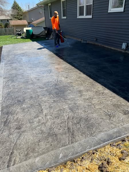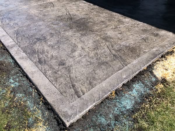 Fun one we did for a customer, Medium gray release base color, rough stone stamps and decorative Romans slate border.