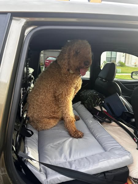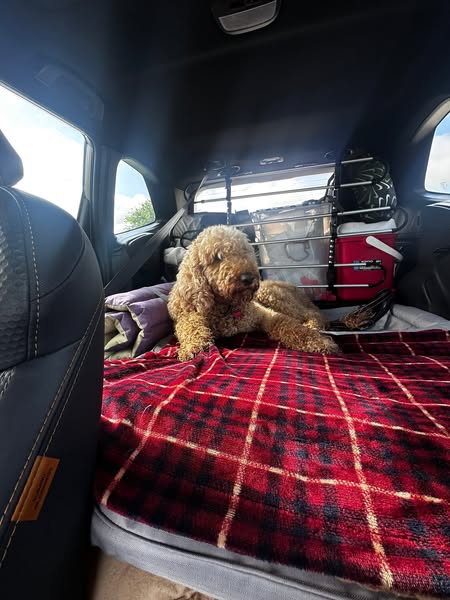 We completed this trip in just a day and a half. Due to a heavy thunderstorm, we made a stop at a hotel for the night — a much-needed break for Mr. Fuzzy to rest away from the car. 🏨🐶