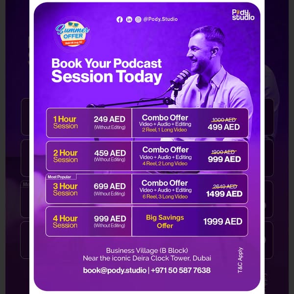📍 Business Village, Office 601 | Near Clock Tower Dubai | 📩 Book@Pody.Studio | 📞 +971 50 587 7638