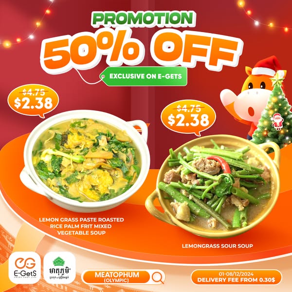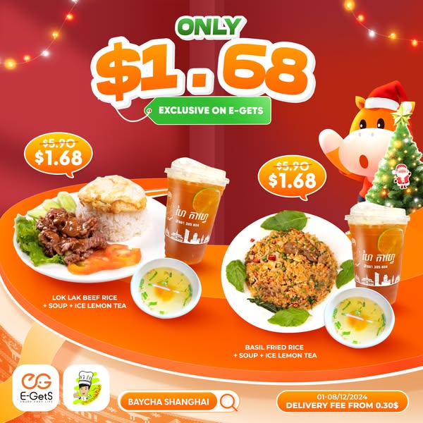 搜索关键词 E-GetS delivery, Cambodia food delivery, December promotion, new user offer, food deals Cambodia, Gyu-Kaku promotion, Emart24 delivery, Lobster Bay offer, Meatophum delivery, Baycha Shanghai优势 Wide range of popular merchants,Exclusive offers for new users,Available from December 1-8, 2024,New user reward $5