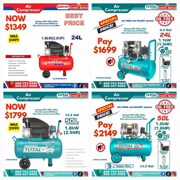 搜索关键词 total tools Trinidad, emtop tools Trinidad, air compressors for sale, pet supplies Trinidad, home improvement sale, power tools discount, hand tools discount, plumbing supplies store, coolers for sale, tool king tt优势 Wide variety of tools and supplies under one roof,Best prices in Trinidad and Tobago,Discounts on power tools and hand tools,New pet supplies and pet food