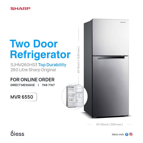 搜索关键词 Original Refrigerators, Refrigerator for sale, Bless store, Fast Delivery, Male delivery, Hulhumale Delivery, Boat delivery, Home Appliances, Kitchen Appliances, Refrigerator shop优势 Fast Delivery,Wide Delivery Area (Boats, Male', Hulhumale'),Availability of multiple contact methods (Call, Viber, Whatsapp)