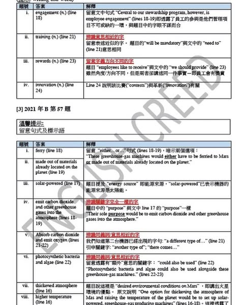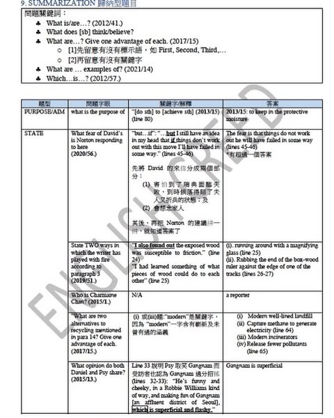 ➡️題型齊全:涵蓋每年必出題目:fill in the blanks、三式判斷題、referencing 等;亦涵蓋一些不常出的題目,如:諷刺、比喻、文學類題目