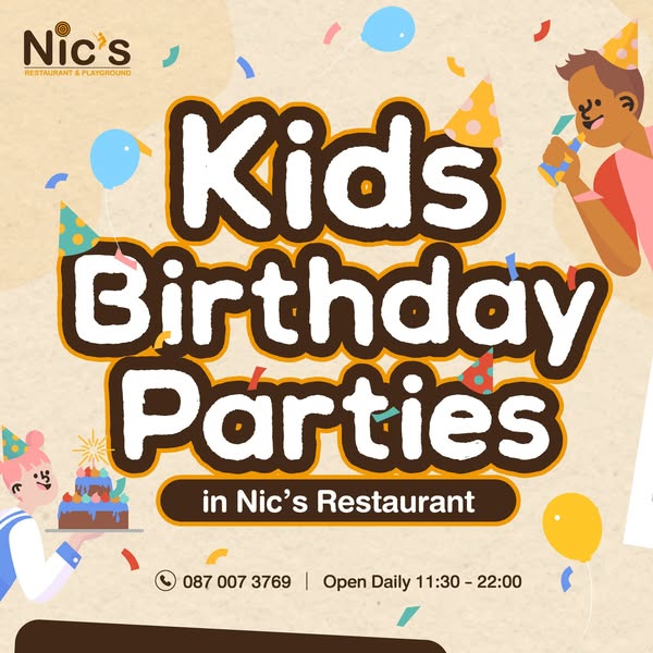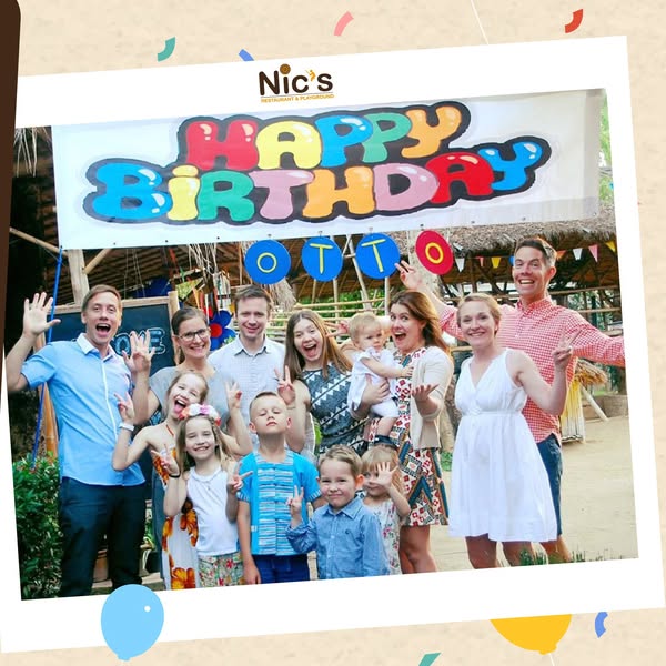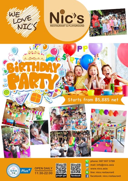 搜索关键词 kids birthday party, Chiang Mai restaurant, family restaurant, restaurant with playground, Nic's restaurant优势 Private party area,Includes food and drink,Playground access,Customizable options