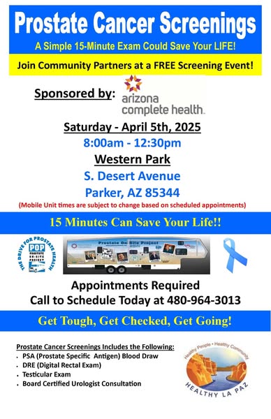 Join us on Saturday April 5th 9:00am-12:00pm at Western Park in Parker for our Annual Community Health Expo! This event happens the first Saturday in April every year and it is the place to gain information on local service providers in the area as well as spend some quality time with your family! We will have healthy snack options, an inflatable obstacle course, music, an awesome raffle, various health screenings, well child checks and a prostate screening unit on site. This is a free event you won't want to miss!