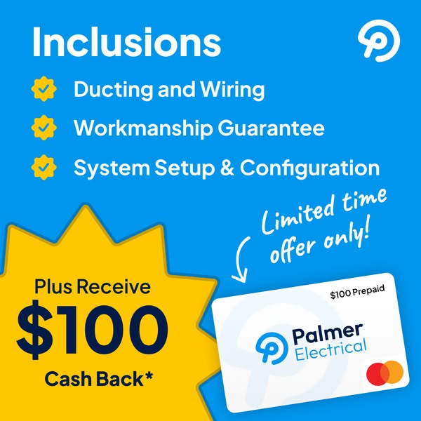 Time is running out! Claim your $100 cashback on aircon installations before the offer ends. Get a free quote today with Palmer Electrical!