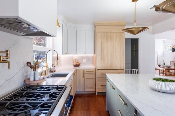 搜索关键词 kitchen refacing, kitchen remodel, kitchen renovation, Glenridge kitchen, gold accents, new countertops, kitchen island, home improvement, affordable kitchen, updated kitchen优势 Ultimate Kitchen Refresh,New Kitchen Island,Stunning Gold Accents,Beautiful New Countertops,Appliance Panels