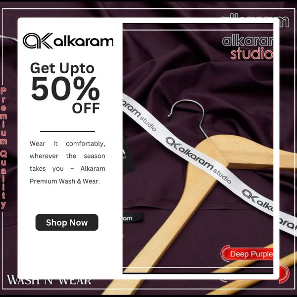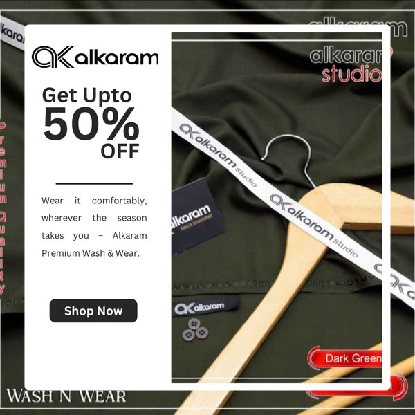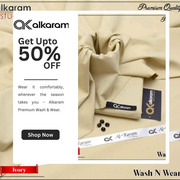 ✨ Alhamdulillah! Experience Luxury with Alkaram Store’s Finest Suiting ✨ 🔹 Four Seasonal Wash N Wear – Designed for elegance and comfort in every season. 🔹 Premium 100% Wash N Wear Fabric – Lavish, breathable, and perfect for a sophisticated look. 🔹 Alkaram Store Original Kanari – The mark of authenticity and excellence! 🔹 10 Stunning Colors Available – Choose your shade and make a bold statement. 🔹 Brand Cutting – 4 Meters – Tailored for a perfect fit. 🔹 Original Bag Packing & Fancy Metallic Buttons – Because details matter! ⚠️ Note: Due to photographic lighting & screen calibrations, colors may slightly vary.