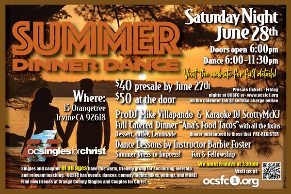 You are wholeheartedly welcome to come and join us this coming Friday Night June 13th, at O.C.S.F.C.; for another Superb Evening of Music, Applicable Teaching, and lots of Exciting Interactive Activities with other Single Adults and Couples! Every Friday Night is different, so come and enjoy an enhancement to the quality of your life! Also, bring a Friend too, they will have a lot of fun too!