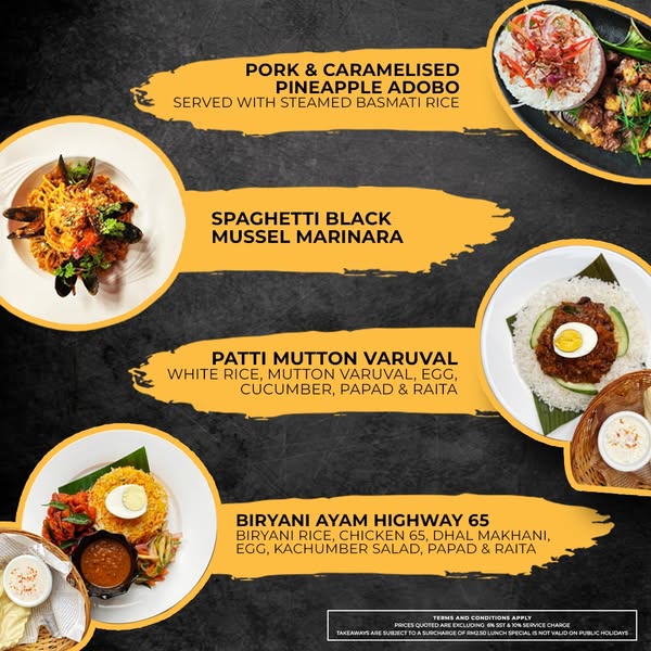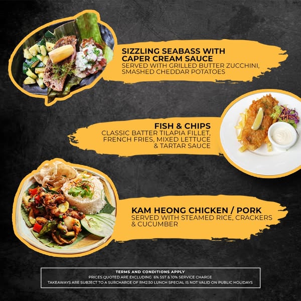 搜索关键词 weekday lunch special, rockafellers straits quay, straits quay restaurant, affordable lunch, lunch delivery Malaysia, pork adobo, chicken tikka, sea bass meal, Olive Tree Group, lunch promotion优势 Complimentary soup/salad and beverage,Affordable price (RM25 NETT),Available for dine-in, takeaway, or delivery,Variety of delicious options