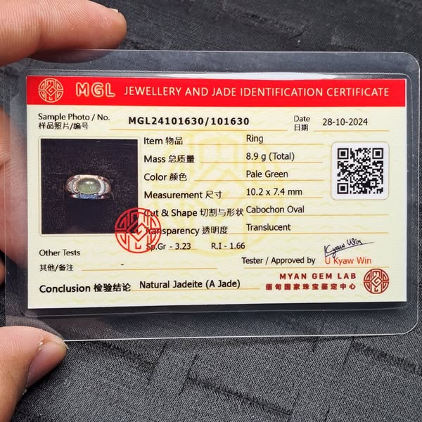 A Jade Certificate စစ်ချက်ကဒ် ပါမယ်