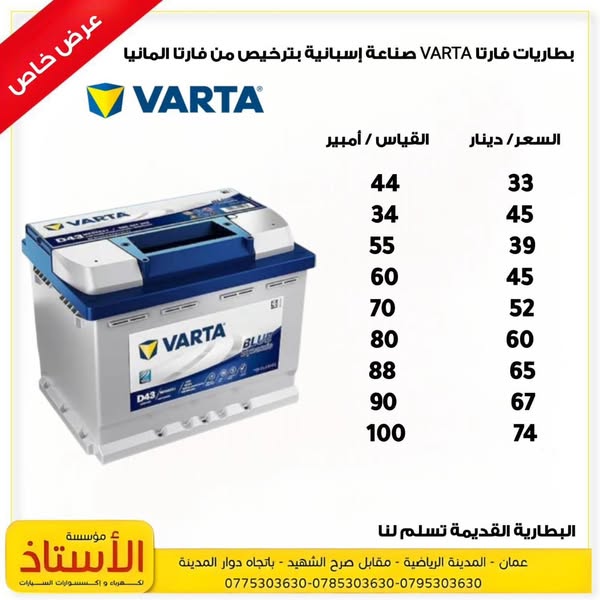 搜索关键词 car batteries jordan, automotive batteries sale, free battery check, maintenance free batteries, jordan car parts, استاد لكهرباء واكسسوار السيارات, عمان المدينة الرياضية, battery installation service, car dynamo check, car electrical repair优势 Best car battery types,Best prices in the Kingdom,Modern production,Maintenance-free,Pre-charged and ready to use,Free battery check,Free dynamo check,Free electrical leakage check,Free removal and installation,Lowest price in the Kingdom