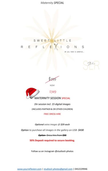 XMAS MATERNITY SPECIAL $349! Limited time ONLY!! Includes 1 x Free Dress Hire and 15 Hi-Res Digital Images. DM to book your session.