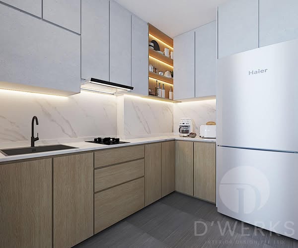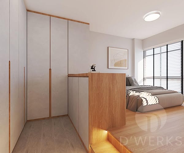 It features a harmonious blend of light wood and neutral tones, creating a warm and inviting atmosphere. The open-concept layout maximises space, with a seamless flow between the living, kitchen, and sleeping area, which is perfect for singles or even young couples living in this modern society. 😊