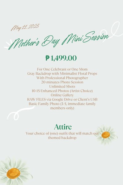 We are introducing our Mother's Day Marathon Mini Session to be held on Sunday, May 11, 2025 here in our Home Studio. For mothers, mothers-to-be, and mother figures that are the light of the household. 🌸