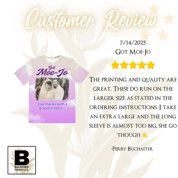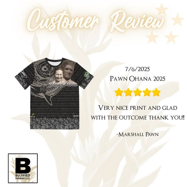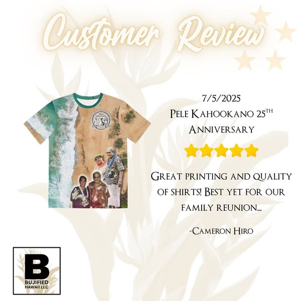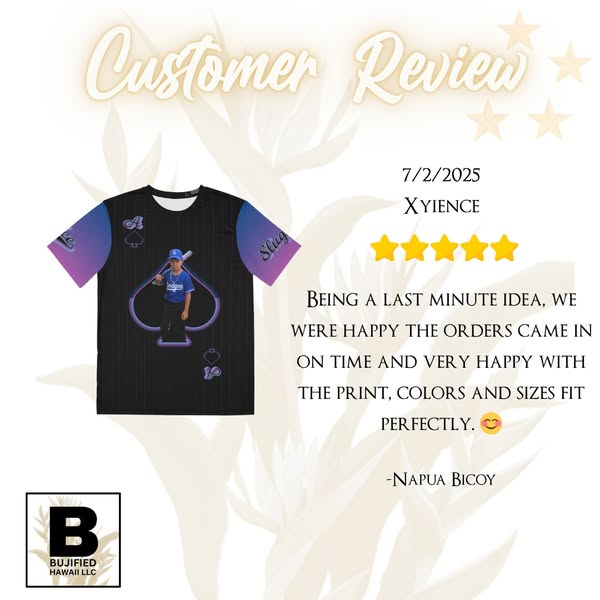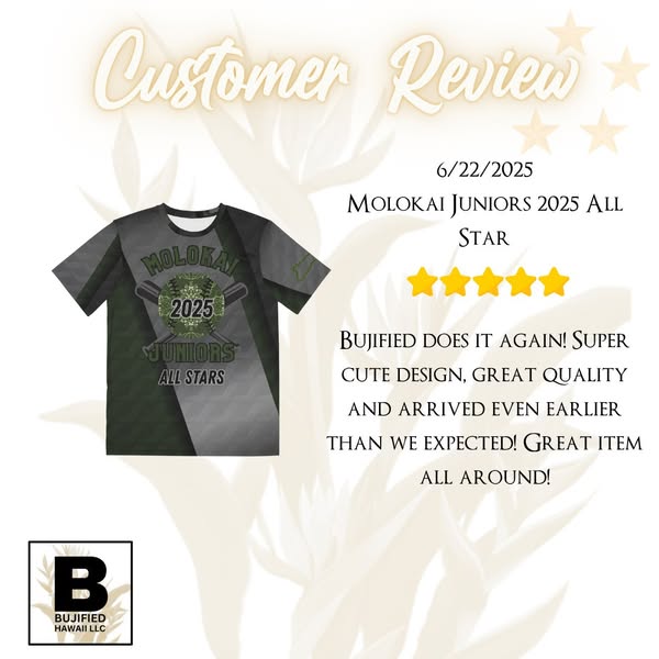 When it comes to custom sublimation, our customers speak for themselves! ⭐️⭐️⭐️⭐️⭐️ We're delighted to share that Bujified has earned all 5-star reviews. Thank you for trusting us with your custom shirt needs – mahalo mahalo mahalo!