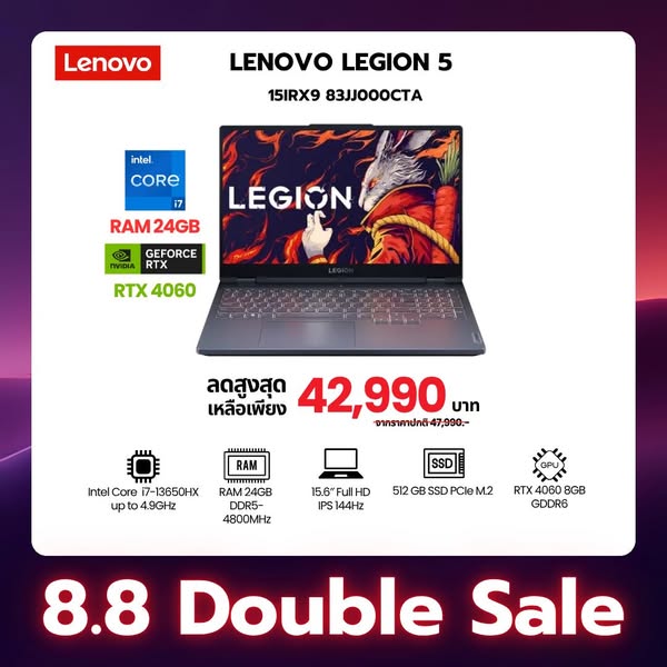 搜索关键词 Lenovo Notebook Sale, Gaming Laptop, Lenovo Legion, Lenovo LOQ, 8.8 Sale, cheap notebook, best gaming notebook优势 Up to 5,000 Baht Discount,Performance for Gamers and Creators,Free Premium Mouse,Free Shipping,3-Year Warranty,0% Installment Plan (10 Months),Business Class Quality,Long Lasting and Durable