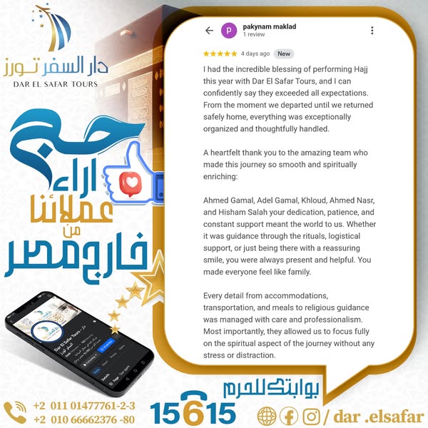 搜索关键词 hajj 2025 packages, umrah 2025 registration, travel agency Egypt, religious tourism, hajj from abroad, umrah packages, dar al safar tours, hajj and umrah, visa from Kuwait, tourism Qatar优势 Positive customer reviews,VIP and economic options,Services for both domestic and international travelers,Easy registration via online form