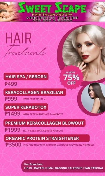FREE HAIR SHAMPOO AND HAIR TREATMENT AFTER 3 DAYS OF REBONDING PACKAGES & ORGANIC PROTEIN STRAIGHTENER