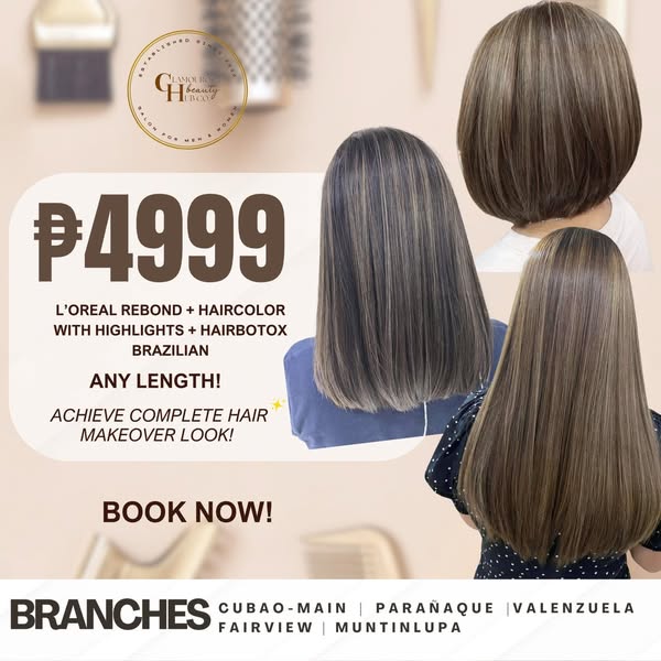 搜索关键词 hair salon promo, hair styling discount, Glamouroza branches, beauty confidence, limited time offer, haircut deals, hair treatment sale, Philippines hair salon, near hair salon,best hair salon优势 Up to 70% off,Multiple branch locations,Promotes confidence and beauty