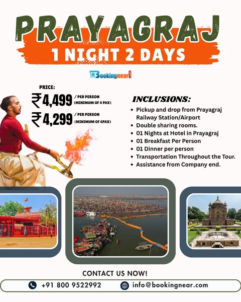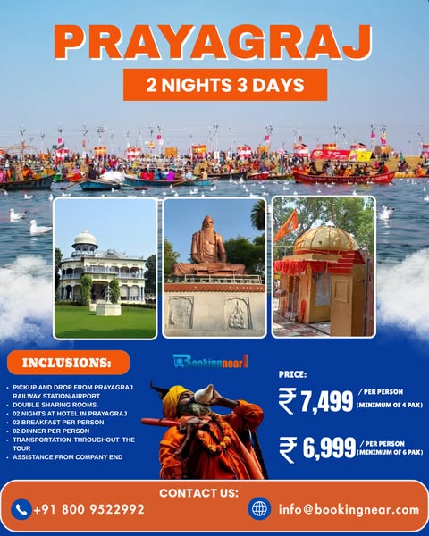 Take a short yet powerful spiritual break to Prayagraj – the sacred land of Triveni Sangam, where the Ganga, Yamuna & Saraswati unite. ✅ Holy Snan at Triveni Sangam ✅ Hanuman Mandir Darshan (Bade Hanuman Ji) ✅ Akshay Vat & Alopi Devi Temple ✅ Evening Ganga Aarti ✅ Comfortable Stay with Meals ✅ Private Transfers / Group Departures 📞 Book Your Darshan Now: 📱 96822 55234 | 80095 22992