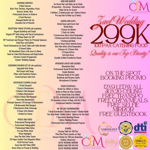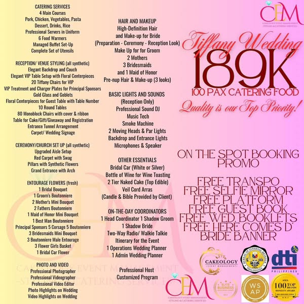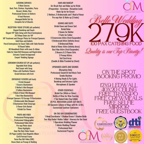 搜索关键词 Cakeology Event Management, wedding planner philippines, event services luzon, metro manila events, quality event planning, best event services, party planning philippines, corporate event management, tarlac event planner, pampanga event services优势 Wide Geographic Coverage (Metro Manila, Luzon),Emphasis on Quality,Multiple Contact Numbers,Physical Branch Locations (Tarlac, Pampanga),Easy to find via Waze/Google Maps