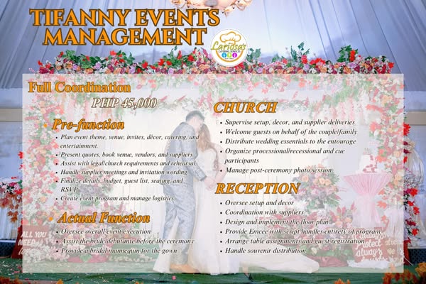 搜索关键词 event management, wedding planner, debut packages, catering services, photo and video, event coordinators, Cavite caterer, intimate weddings, party planning, Philippines events优势 Hassle-free event management,Ensures smooth event flow,Comprehensive services (catering, photography, etc.),Available in multiple regions