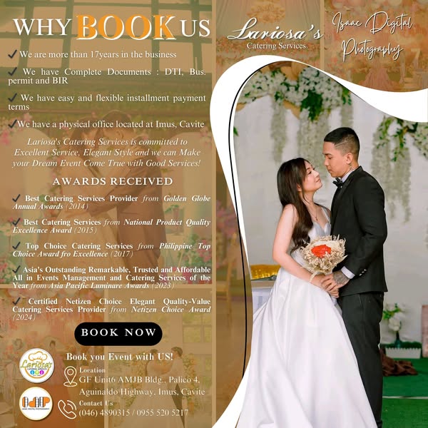 #LariosasCateringServices #IsaacDigitalPhotography #WeddingCatering #completeweddingpackages #completedebutpackages #PhotoVideo #PhotoVideoPh #Cateringph #CateringServices #Calabarzon #SouthCaterer #SouthPhotoVideo #PartyPh #DebutCoordinators #WeddingCoordinators #CaviteCaterer #CavitePhotoVideo #WeddingSupplierph #intimateweddings #intimateevents #weddingplanner #weddingcoordinator #weddingplanning