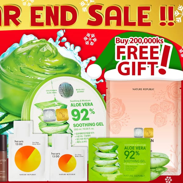 搜索关键词 Nature Republic sale, skin care Myanmar, year end promotion, Korean beauty, cosmetic gift优势 Up to 80% off,Free gift with purchase over 200,000 MMK,Wide range of products included in the promotion,Offers popular products like Aloe Vera Gel and Rose Mask,Authenticity guaranteed with hologram labels