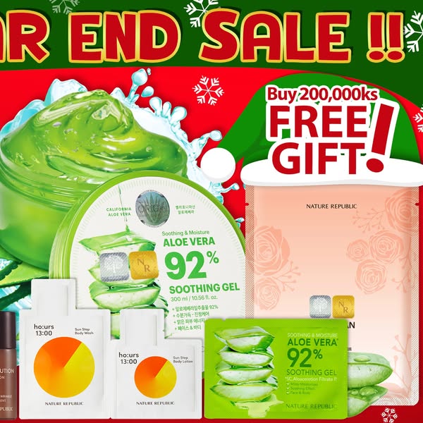 搜索关键词 NR products, year end sale, free gift, cosmetics promotion, skin care Myanmar, aloe vera gel, Korean beauty products, nature republic sale, beauty gifts, discount sale优势 Up to 80% Off,Free Gift with Purchase,Wide Range of Products