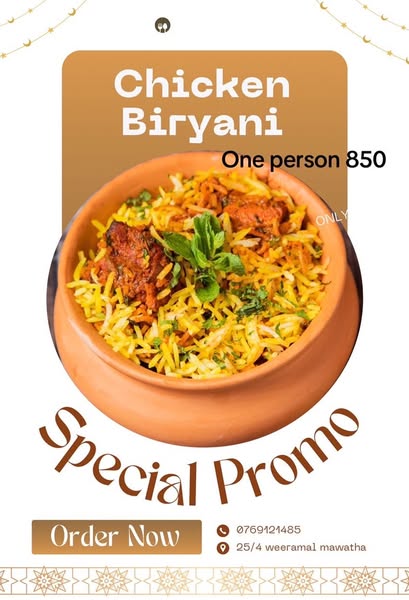 搜索关键词 chicken biryani, pereras kitchen, srilanka eats, biryani promo, food delivery, clay pot biryani, biryani lovers, srilankan food, sri lanka cuisine, tasty biryani优势 Authentic taste,Served in clay pot,Special promo price,Available in different sizes